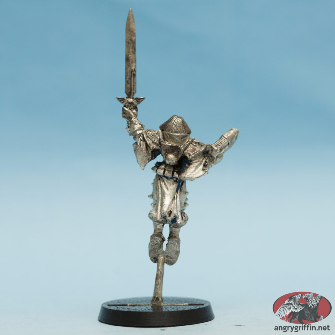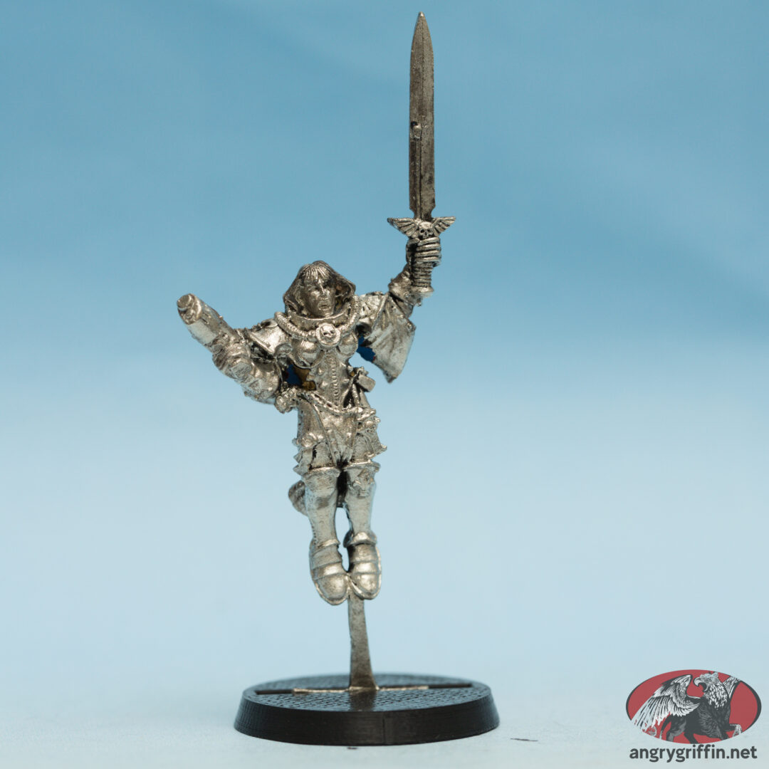 This is a Jes Goodwin sculpt from 1997 – a Seraphim Sister Superior with Plasma Pistol and Power Sword. She can be found in the 1998 catalogue as part number 010601003.