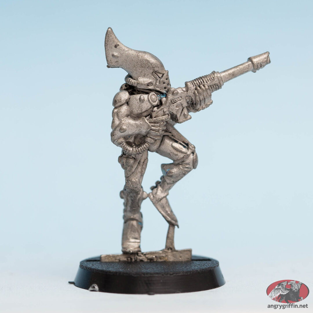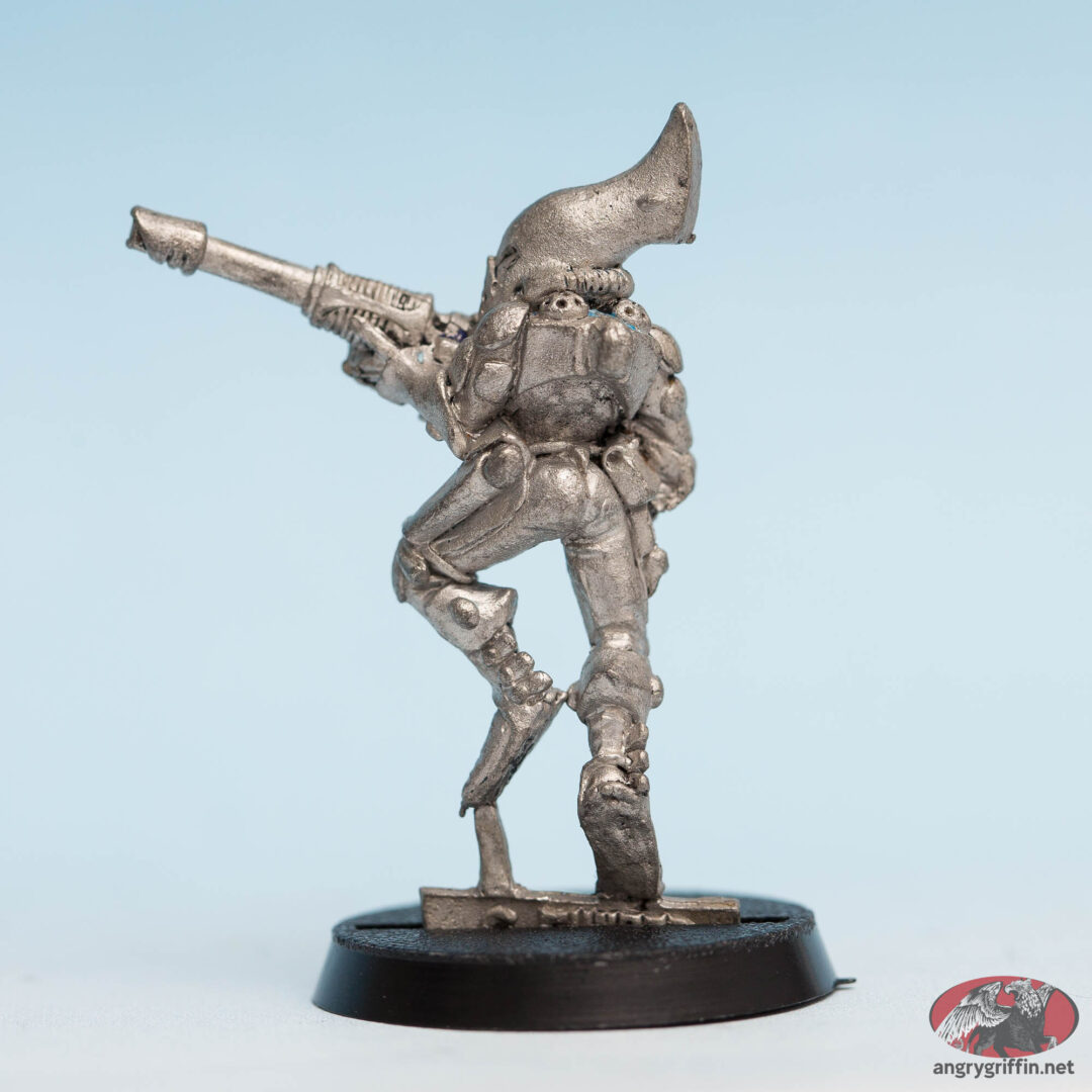 This metal Warhammer 40K Rogue Trader Eldar model is Swooping Hawk #1. It’s a 1990 sculpt by Jes Goodwin and appears in the 1991 Blue catalogue as part number 071560/3.