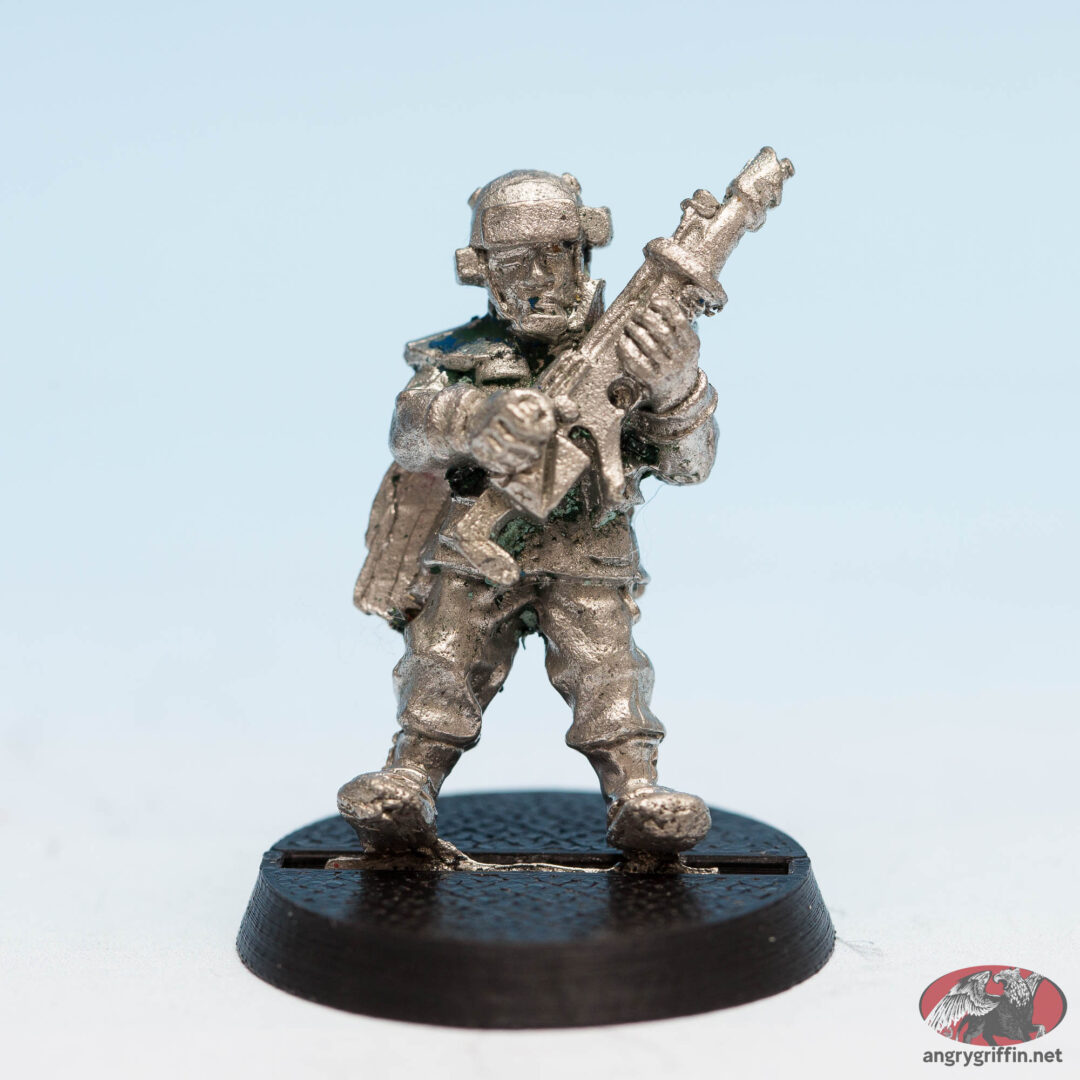 This is Trooper Davey, who was a sculpt for the Imperial Army (later Imperial Guard) in the Rogue Trader era of Warhammer 40K.