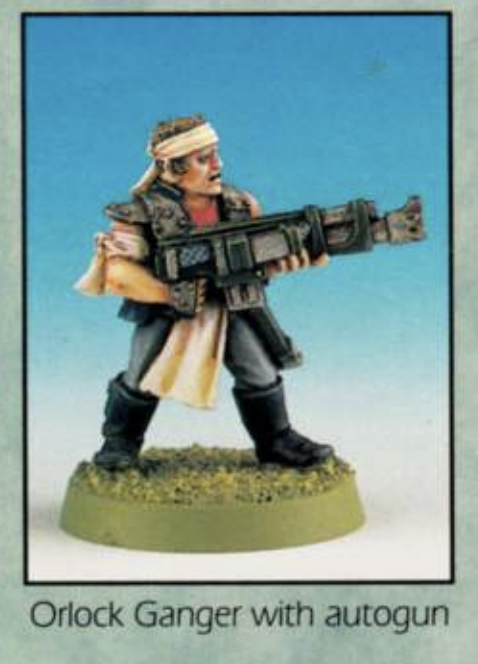 This metal Orlock Ganger with an autogun is part number 0044/2 and is a 1995 Michael Perry sculpt.