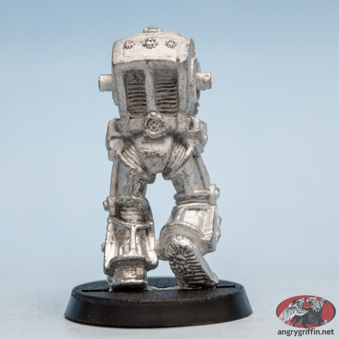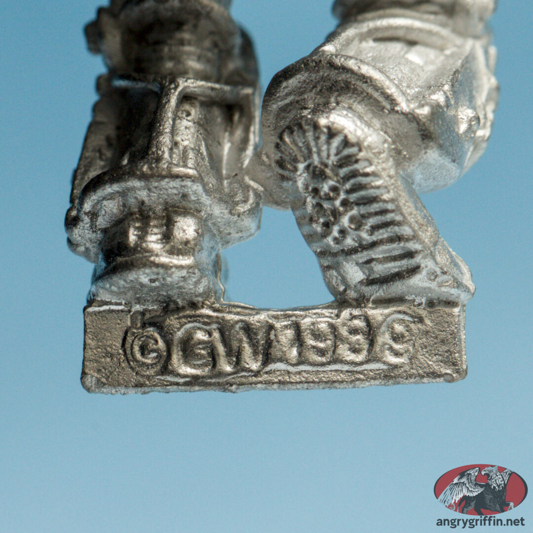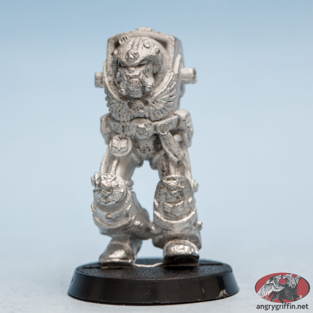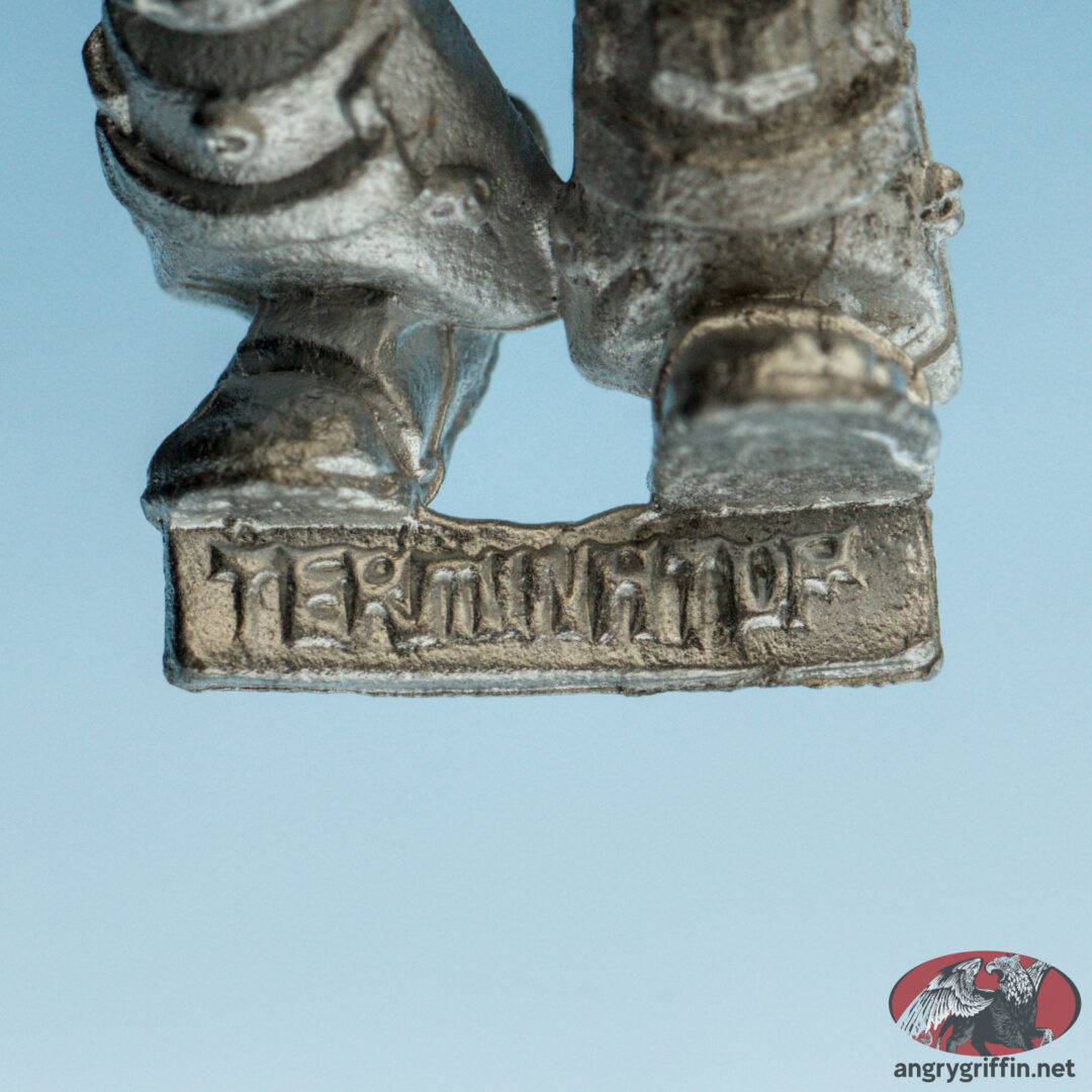 This Space Marine Terminator was the first metal Terminator Librarian, released in the RTB09 box set! He’s part number RTB/6 according to the 1991 Blue catalogue. He’s a 1989 Jes Goodwin sculpt.