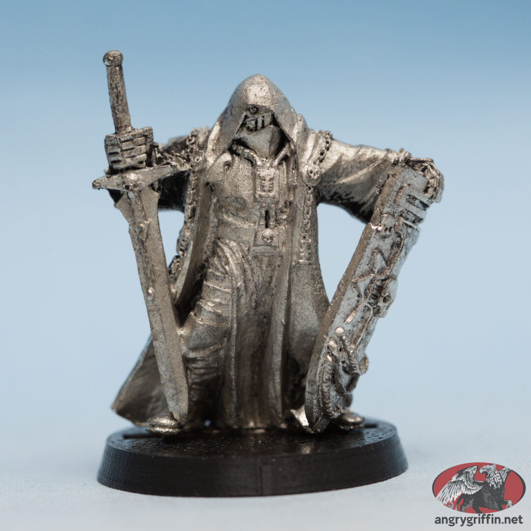 This miniature is a 2003 Witch Hunter Crusader 1 from the Inquisition, and can be found in the 2005 US catalogue with part number 9947010804503. I can’t find a sculpting credit in the catalogues, perhaps it’ll be in WD.